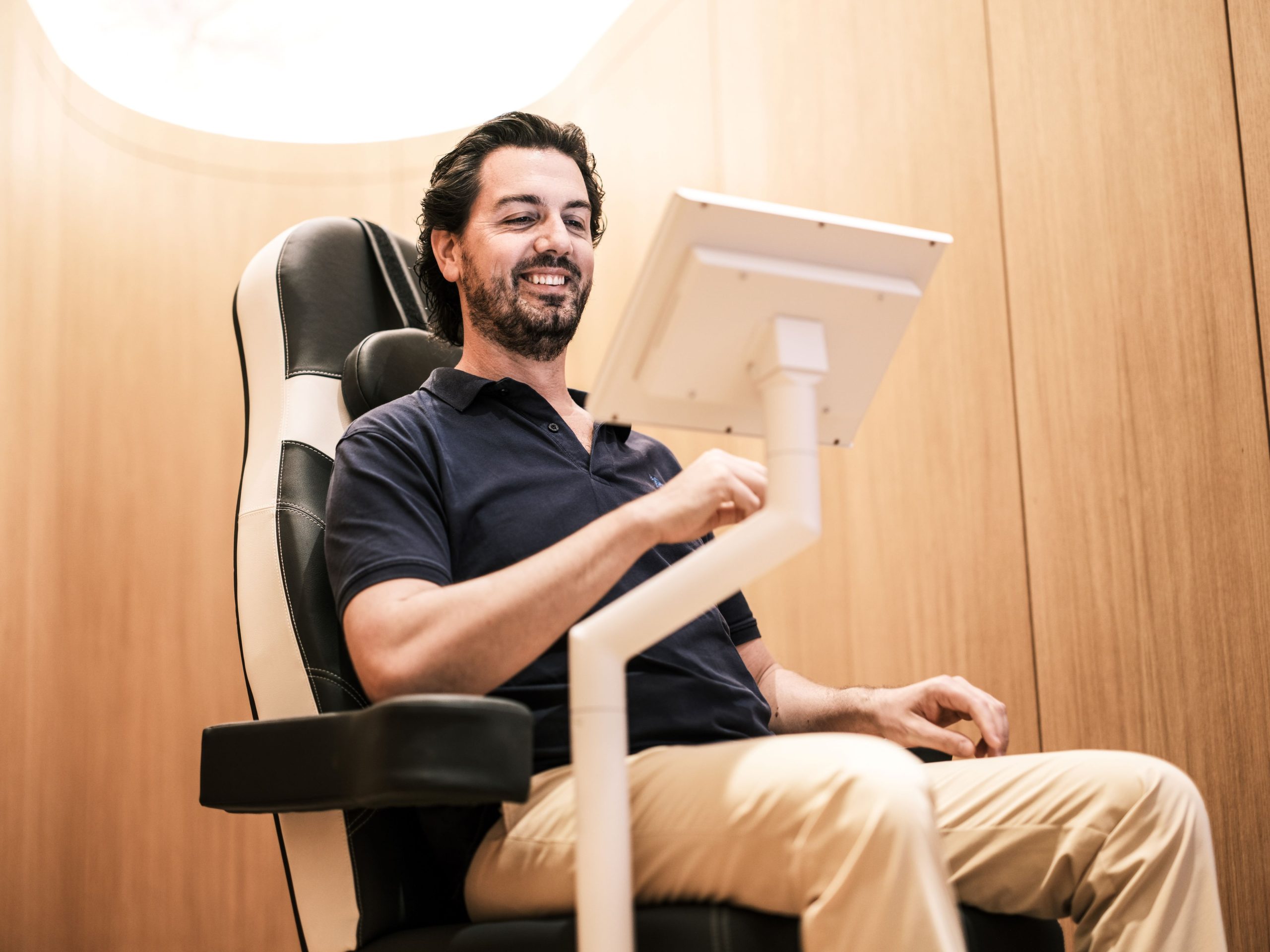 Die Traininseinheiten dauern zwischen 15 und 22 Minuten; in Alltagskleidung mit Schuhen, ganz komfortabel im Sitzen.